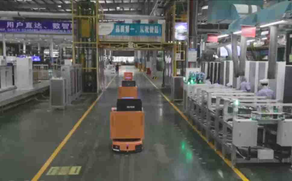 为车载冰箱物流配送打造的智能解决方案,,包含产中物流通过潜伏举升AMR搬运至线边,,,,产后成品物流智能仓储,,,流程包含产中物流智能齐套入库,,线边安灯叫料AMR智能配送至线边,,,,成品入库、、出库,,,通过无人堆高车机器人,,智能仓储管理替代人工作业管理,,,实现更高存储、、更高效率、、更具柔性化的解决方案。。。