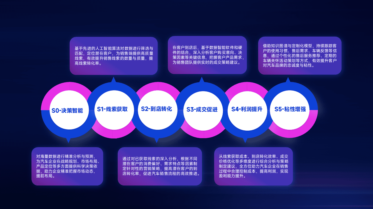 通过拓宽潜在客户来源、、、优化线索分配并提高到店转化率,,,以增强销售效率。。同时,,利用线索数据不断优化分析模型,,有效提升转化率,,,扩大营销影响力。。。